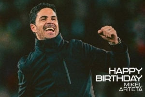 体育资讯3月26日讯 阿尔特塔今天迎来44岁生日,阿森纳官推发文祝福。