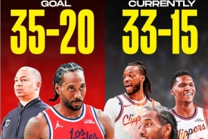 如今,他们正稳步前进,每晚都在努力争取胜利。在这一阶段,快船已经取得了33胜15负的战绩,距离目标仅一步之遥。