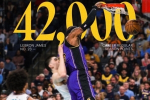 去年今日:詹姆斯生涯常规赛总得分突破42000分大关 历史独一档
