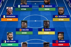 德转列非洲最贵阵:姆伯莫、奥斯梅恩领衔 迪奥曼德、塞梅尼奥在列