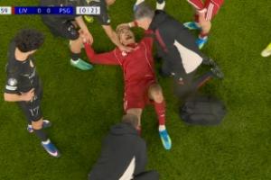 体育资讯04月15日讯 欧冠8强次回合利物浦vs巴黎,埃基蒂克第29分钟无对抗受伤,被担架抬出场。萨拉赫登场!