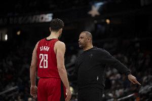 乌度卡:“有球员在罚球线区域处理球,会让对手有所忌惮,申京是我们在这方面做得最好的球员之一,谢泼德也不错。我觉得在进攻时间所剩不多时,执着于寻找特定错位,让某些球员在进攻时间快结束时陷入困境,对我们没有好处。”